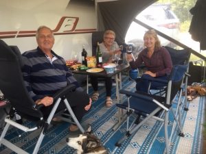 The next day was wet again so we had another food shopping trip where we bumped into Peter and Ro. By chance we’d just bought them some Caprice des Dieux cheese – one of our favourites and they hadn’t tried it before. When we got back Roe called round to thank us and invited us to join them in the afternoon for tea and apricot tart. Never ones to refuse food we accepted and were  just about to pop round when Hank knocked on the window and asked if he could also inspect Stavvers decor! It did seem a little strange but maybe they were just being very friendly, who knows? After talking to Hank for about half an hour we went next door, had our tea and cake and then we decided it was time for some wine. 3 bottles of red wine later the rainy afternoon had passed very happily! Peter and Roe are a lovely couple and we get on really well – as the forecast for Thursday was good we invited them to us for a barbecue.