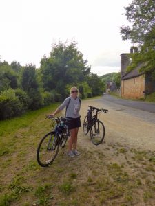 After these encounters we decided to explore the small roads from the campsite on our bikes, and set off with a map from reception.  Unfortunately I misread it and we set off in the wrong direction and soon encountered Karol’s nemesis – hills!  They weren’t particularly steep but they went on, and on and on….  Eventually we reached the top only to be faced with a 3 km downhill on the main road as our only option.  This led into Le Buisson so we cycled over the railway line, over the bridge crossing the Dordogne and turned right to a small hamlet called Bicaroque.  This is a very pretty village but not much there, so we consulted the map again and realised that we weren’t far from the quiet road that we tried to pick up from the campsite.  We picked this up a few minutes later and had a very pleasant quiet ride back to the site.