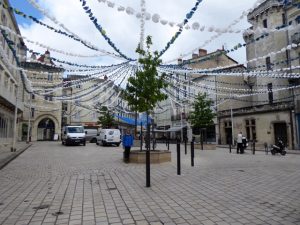 Perigueux is split into two parts – the medieval area and the roman area.  Our first ‘tour’ took in all the important landmarks for the medieval area including the Cathedral St-Front, the Tour Mataguerre – a 15th century tower and the last one standing out of an original 28, and the Place du Coderc and the Place St-Louis where the most affluent houses were those belonging to the butchers who made pate and foie gras.  By chance we also stumbled across the Tourist Information office, which had obviously moved as it was nowhere near where it should have been!
