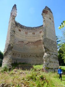 The weather had improved to the point where we could take off our coats but by 12.30 we were getting hungry so stopped for lunch, another delicious meal of the day and glass of wine.  Afterwards we decided to make the most of the sunshine with a tour of the roman area.  No sooner had we arrived at the first stop, the arena, than the heavens opened, and after trying to stay dry under a tree we eventually sheltered in a roman tunnel until it eased.  Then the sun came out again, which allowed us to complete the tour, and dry off at the same time. The roman remains are spectacular and really well preserved so we were pleased the rain had stopped.