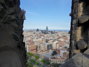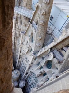 We stayed a couple of hours and then went up the Nativity Tower in the designated lift and walked down the 350 steps, giving great views of the Familia and downtown Barcelona along the way.