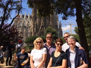 We’d arranged to meet some old school friends of mine for lunch, as they happened to be in the City at the same time celebrating their collective 60th birthdays. We met Karen, Andy, Sharron, Graham and his wife Linda outside Gaudi’s Casa de Batllo, or House of Bones, had a very pleasant tapas lunch, and did lots of catching up. They’d been in the city since Friday and Andy and Graham had managed to take in the match between Barcelona and Villareal on Saturday afternoon, where the home team won 4-1 with goals from Suarez, Neymar and Messi (2) – just in case you were interested! They were travelling back that evening into Leeds Bradford.