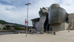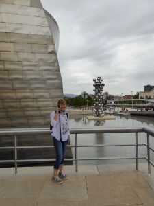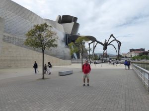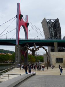 Duly fortified, we followed the river on foot until we reached the Guggenheim Museum. The is an amazing range of buildings built in the 1990’s and is breathtaking, and even incorporates an old bridge amongst its structure. It’s one of three Guggenheim establishments along with New York and Venice, and is truly stunning. By the time we reached it, it had started to drizzle so we decided to go in and have a look around.