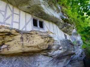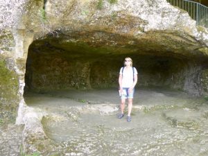 Wednesday dawned bright and sunny with a clear blue sky – at long last! We decided we’d cycle to La Roque Saint-Christophe, a UNESCO World Heritage site, about 2km from the site. It’s a really impressive set of caves that have were first occupied over 55,000 years ago, and were continuously occupied for most of the last 15,000 years. In the middle ages they were altered to become a fort and town with stables, kitchens and even a forge!