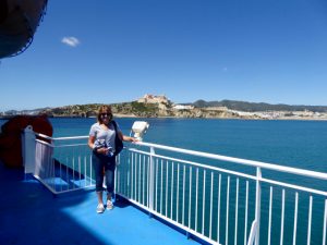 Once on the ferry we were pleased to find that a cabin was included in the price so dumped our bags and went outside in the scorching mid day sun to enjoy the view and say goodbye to Ibiza.
