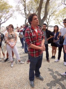Our campsite on the outskirts of Lisbon has been underwhelming – it was recommended by a couple we met at Comillas, and as there are only two campsites in the Lisbon area we dread to think what the other is like. To be fair it hasn’t really bothered us as we are self-sufficient – we have all amenities plumbed/wired in here so we don’t even need the shower block. The thing is that we’re not being fussy, all of us campers seem to be of the same opinion about the site! It’s a big site and there is an interesting mix of accommodation here, some much bigger motor homes than we’ve seen to date and some really old converted vans. Anyway rather than staying in we’ve been going into Lisbon, a beautiful vibrant city with a very different feel to Porto. On our first trip we took a walking tour with the very charismatic and witty Cuco, a young Portuguese man with an amazing command of English and a great sense of humour.