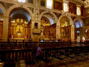 Our 3 hour tour passed so quickly as he introduced us to non-touristy Lisbon, the narrow streets of the Bairro Alto where there are over 200 bars each the size of a tiny sitting room, where you buy a drink and then stand outside to socialise while you drink, the best viewpoints, and the church of Sao Roque which looks so plain from the outside but which is the home of the most expensive chapel in the world. The value today of the gold, jade, amethyst and lapis lazuli chapel is 16bn euros!