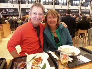 We walked alongside the River Tagus and under the 25 Abril bridge (named after the date of the revolution in 1974) back into the city to visit the Time Out food hall for lunch, a vibrant place with a choice of around 20 food stalls and seating in the centre.