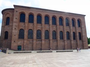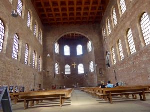 The original building was Roman and built as Emperor Constantine’s throne room, but it is now used as a Protestant church. The building was very badly damaged during WW2 but has been rebuilt almost as it was – it is enormous, and is the largest single room Roman structure still in existence. The interior and exterior are both austere – brick built walls and very simple seating and altar. We found it very moving. Right alongside the Basilica is the Kurfurstliches Palais which by contrast is very ornate, with beautiful gardens.
