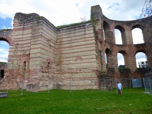 A Greek hermit called Simeon lived in the east tower for six years in the 11th century, and after his death he was buried inside the gate and later became a saint. We decided to catch the bus back to the car park from the area where we had been dropped off earlier, so set off in that direction but making a detour to see the Kaiserthermen, the ruins of a huge Roman thermal baths. This covered a very large area, and consisted of underground hot and cold water baths, boiler rooms and heating channels, with striped brick and stone arches. Very impressive, and it is being very sympathetically restored, although it was never finished in the first place, and was instead used as a barracks.