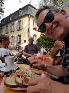 We are having real problems with wifi at this site so on Tuesday, after a quick shopping trip, we found a bar with free wifi so we could catch up with messages, upload photos and publish a blog. I suspect we will be doing that again today! We cycled 12km down to Wasserbillig (where the car ferry crosses the river) in the afternoon, a lovely flat cycle ride on a great cycle path right alongside the river, it was my kind of cycling!