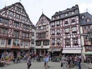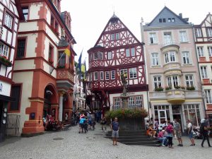 Bernkastel is one of the larger towns in the Mosel valley and is quite touristy, but most people seemed happy to sit in the cafes so we had no problem getting around. There is a very beautiful market square with half timbered buildings, the Landshut castle and so many vineyards in and around the town.