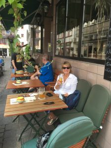 After lunch we detoured towards the railway station to book a table for lunch the next day, as it was our 40th (Ruby) Wedding Anniversary! We’d picked it out on Trip Advisor – Koenigsbacher Treff – and following the directions found what we thought was the restaurant (the sign above it said Koenigsbacher) and booked a table for 3 the following afternoon. We then decided to head back to the site, but on the way came across, (yes, you’re ahead of me, I know…) the Tourist Information! Unfortunately it was now after 3.30 so the tour was long gone. However, we were able to buy a map in English with all the attractions catalogued, so decided that we would return on Sunday to see the remainder of the sights and do our own tour, before heading off for our celebratory lunch.