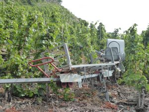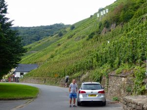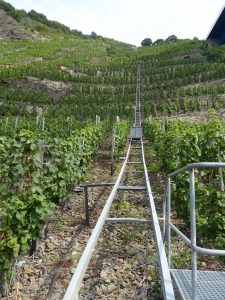We then drove onto Bremm, where the (allegedly) steepest vines in the world are located. They certainly were steep, but didn’t seem more so than other Mosel Valley vineyards we’d encountered already. However, they do produce the best wine – the region is known as Calmont, and the most expensive Mosel wines originate here. Apparently it’s to do with the amount of slate in the soil, and the fact that they are obviously well drained! Because the vines are on such steep cliffs, special ‘lifts’ have been installed on the mountainside – a bit like stairlifts, which run on tracks between the rows of vines.