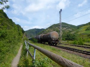 We then briefly passed into, and out of Bullay, which we’d struggled to find as it was hidden behind its own railway and bus station, and wasn’t as picturesque as we’d been told. On the way back we stopped for a brief look at the famous Kaiser Wilhelm Tunnel. This is a 4km railway tunnel built in the 1870’s and still in use today. However, they are in the process of upgrading it, so it was difficult to get close, but we did manage to take a picture of the signboard, and one of a goods train passing through for good measure.