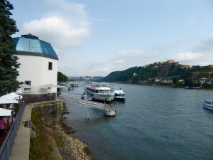 So on Saturday we cycled into Koblenz. There is a cycle path all the way so it was quite straightforward, and we parked our bikes near the bus station and set off to explore. We stopped for a quick coffee at what turned out to be a Spanish bar, so it was quite confusing to be spoken to in Spanish rather than German, having only just got used to ‘Ja’ and ‘Danke.’ I’ll be glad when it’s back to only English!