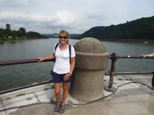 Friday we were on the move again, this time just an hours drive to Koblenz, where the Rhine and the Mosel converge. In fact we’re staying at Guls, which is 7km from Koblenz City Centre, still on the banks of the Mosel. We haven’t been to Koblenz since we passed through it with Scriven Park FC in 1982 on our way to Rohrdorf. At the time we were in three mini buses in convoy through the City Centre (not sure why we were going though the centre) and Dave Kemp was driving our bus for this leg of the journey. He was a recently qualified driver, and hadn’t got used to the fact that in a left hand drive car all of the vehicle is on your right, not your left. I have a vivid memory of him mounting the pavement with the bus, and pinning pedestrians to the wall before we managed to drag him back into the road. I don’t remember anything else about Koblenz though, so was looking forward to seeing it in less stressful circumstances.