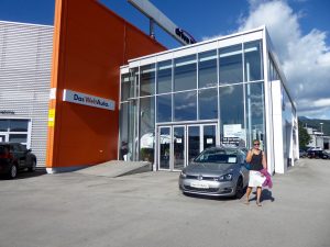 Friday was a bit different, in that we had to take the car in for service!  I’d been informed (by the car) that it was due for an oil change, so the site kindly booked it in for us at the local VW dealer in Villach – some 10 km away.  We were up and out early as they wanted the car by 8.30 a.m. and they booked us in very efficiently (in English!) but said they needed the car all day as it also needed a gearbox oil change too, and they wanted to deal with our ’emissions’ problem which apparently meant that they would reduce the bhp from 200 to 170!