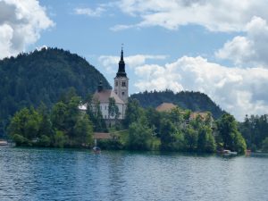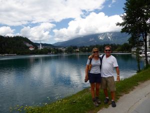 The next morning we set off earlyish and arrived at Lake Bled, about 30k away from Villach, about 10.45. We parked up and walked down the hill to the lake itself.  Frankie Long had recommended we visit the lake, as she’d been and said it was a stunning setting.  It truly is!  We were able to walk right round the lake, stopping for coffee, and then to buy a picnic at a local supermarket.  We took loads of photos, which frankly don’t do it justice, but will give you a flavour of the place.