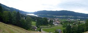 Sunday the forecast was mixed once more, with the best of the dry weather in the morning so we set off to walk the Sassler Trail – an 11 km circular walk up the mountain on the opposite side of the Lake to the campsite.  It also promised a cafe at the top!