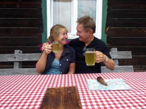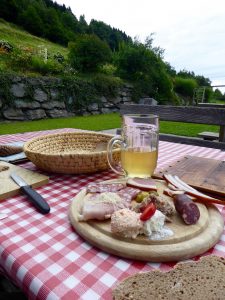 We had an App to follow, and a bit of a map, but still managed to get lost a couple of times.  We met a German couple doing the same walk without a map, so we at least had someone to get lost with now!  We all arrived at the cafe at the same time, and sat down to order our food and drink – everything homemade.  In fact when we asked for coffee afterwards Kathrin, the owner, said she was only licensed to sell things that she had made, so couldn’t do coffees!