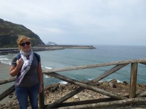 It is a lovely site, only yards from the sea and with mountains close behind us. We set up camp, which took a while as the pitch is not as level as it looks, then visited the camp restaurant/bar for a tapas lunch. You order your choices on a preprinted form, which you then hand in to the waitress who lets you know when it is ready to collect – an unusual system but it works, even with our non-existent knowledge of the local dialect. We then had a bracing walk by the beach and to the harbour before heading out to the nearest supermarket in Orio, about a mile away.
