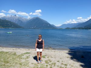 The main reason we wanted to come to Como is because we spent our honeymoon here almost 40 years ago. In those days it was a 6 night Cosmos package holiday in a 2* hotel, and it took us 36 hours each way on a coach from London Victoria to get here. How times have changed – now we are camping in a caravan! Anyway we have fabulous memories of our stay here in 1977, mainly hazy as we had discovered Italian white wine which was incredibly cheap in those days. We are delighted to find that the area is just as beautiful as we remembered – it is busier of course, but the scenery of the lake with the Alps in the background is sensational.