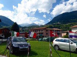 We’d already programmed the Satnav to take us to Camping Golden Sheep (!) at Domaso at the top of Lake Como, and expected it to be a relatively short hop of about 2 hours.  Unfortunately the Satnav seems to have developed a mind of her own (Karol’s certain it’s a ‘she’!) and after 20 minutes we still hadn’t left San Felice, as ‘she’ kept giving us conflicting directions. This wasn’t the first time ‘she’ had done this – it seemed as though she was giving us a different road out of the area every time we went anywhere. Having ended up in a supermarket car park to turn round (our decision not hers!) we set about re-booting her, and checking the map – we then headed for the motorway at the foot of Lake Garda and ignored her instructions until we knew we were on the motorway and heading in the right direction. Apart from the usual procession of speeding lorries passing us, all went well until she told us there was a holdup on our route, and offered us an alternative.  We accepted the new route, which then took us through some lovely scenic countryside, albeit on very windy roads.  We eventually arrived at Golden Sheep some four and a half hours later, somewhat frazzled!