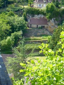Monday we did some chores and then in the afternoon went for a bike ride to explore the village Limeuil. It’s actually only about half a mile away, but over two bridges crossing the Vezere and the Dordogne where they join adjacent to the camp site. It was an important centre from the middle ages until the end of the 18th century as small boats arrived down the Vezere and their goods were loaded onto barges (gabarres) to be taken on to Bordeaux along the Dordogne.