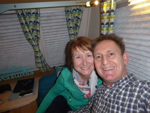 Got away as planned just after 9 with Chris and Danny seeing us off and Chris taking photos. I’d been woken at 4 by the tracker people phoning to say the alarm on the caravan had been triggered (typical – it’s not given a moments trouble for months!). I went outside to check armed with a bloody big torch, but despite the cold and rain, everything was in order, so I popped off back to bed. The journey south was fine despite us nearly forgetting to pay for petrol, we both thought the other had paid! Towing with the Passat is much easier than with the truck. We arrived at the site just after 3, and checked in without any trouble. Off out for some tea at a local pub and then an early night, as we’ll have to pack it all up again tomorrow morning!