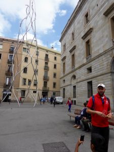 He’s a natural entertainer, and we had a very informative tour of the Gothic Barcelona, which took in the cathedral (not to be confused with Gaudi’s Sagrada Familia) and the square containing Gaudi’s first work – a street lamp and the headquarters of the Catalan local government. He also give us a history lesson including lots of references to William the Herry who was subsequently referred to as Hairy Willie to make him easier to remember (see, it worked Andreas!) and the two Fascist dictators Miguel Primo de Rivera and Franco who ruled for much of the 20th century, and who both attempted to outlaw the speaking of the Catalan language. Even Gaudi himself was arrested on the steps of the Esglesia de Saint Felip Neri in 1924 after being overheard speaking the language. This church was used as an execution centre by Franco for his firing squads, and the bullet holes are still evident today. A bit gruesome for a church methinks!