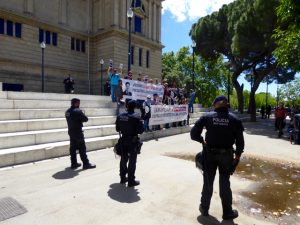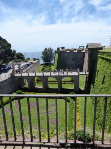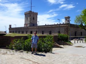 We hadn’t realised that this weekend was the Barcelona Grand Prix and the Barcelona Motor Show. Consequently the roads into the city were packed, and it took us 90 minutes instead of the advertised 50 minutes. Undeterred we caught the metro and then a funicular part way up Montjuic with the intention of catching a bus to the castle at the top and then walk back down. I’d researched this the day before and discovered that on the Barcelona transport system this was all classed as a single journey costing less than 1 euro as long as you purchased a multi journey travel card. However we couldn’t find the funicular at first so exited the station and the had to go back in again – two journeys. After that things seemed to go a little smoother as we found the bus stop showing the correct bus and destination and when it arrived checked with the driver that it was going to the castle. He confirmed it was so everything appeared fine. However the bus didn’t continue up the mountain but back down instead and into the traffic jam that was central Barcelona and the Placa Espanya where the motor show was! To add insult to injury the driver then insisted we got off the bus and paid for yet another journey to go back where we had started from.